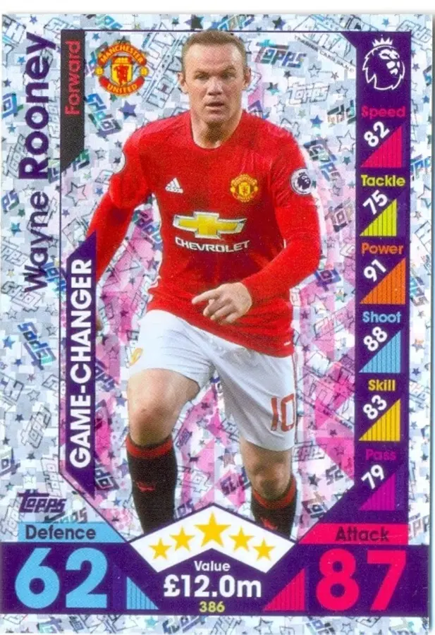 2016-2017 Match Attax Game Changer Card #386 Wayne Rooney - Manchester United