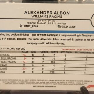 2024 Topps Chrome F1 Qualifying Lap Alex Albon #19