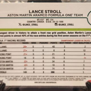 2024 Topps Chrome F1 Qualifying Lap Lance Stroll #12
