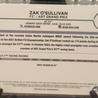 2024 Topps Chrome F1 Qualifying Lap Zak O'Sullivan F2 #29 Black & White Ray Wave Refractor