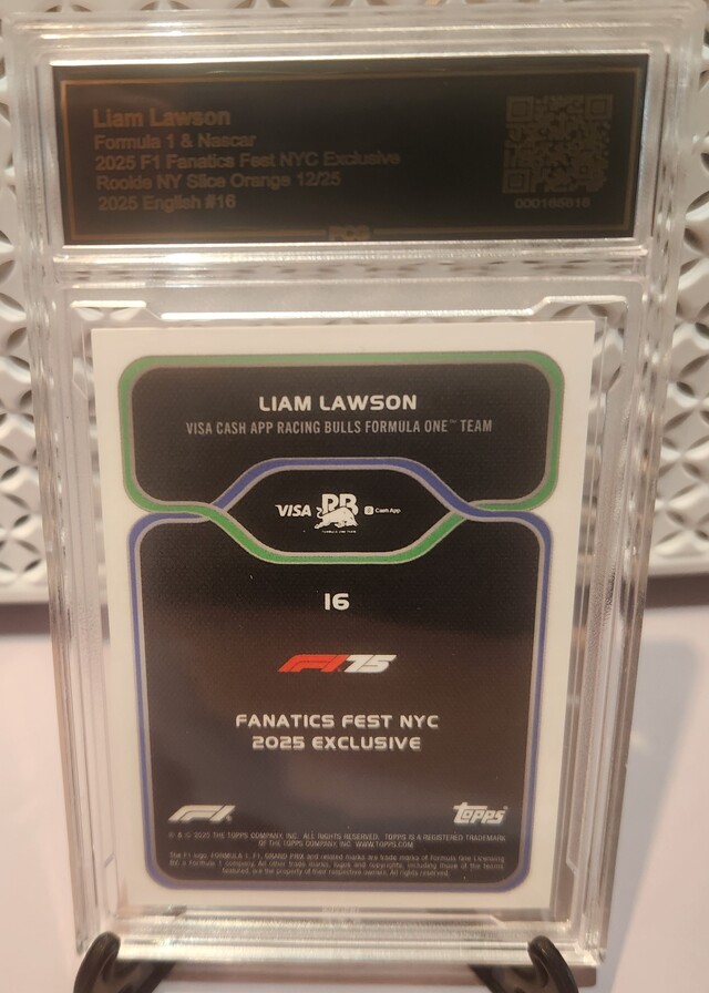 2025 Topps Fanetics Fest NYC Exclusive F1 Liam Lawson 12/25 - PCG Graded 10 Gem Mint