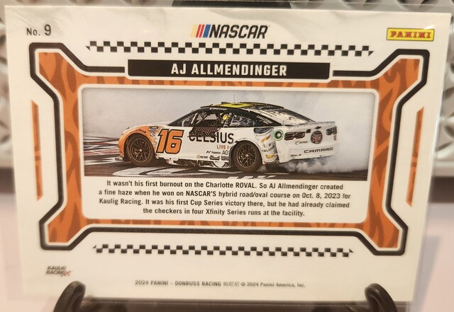 AJ Allmendinger #9 2024 Panini Donruss NASCAR Burning Rubber