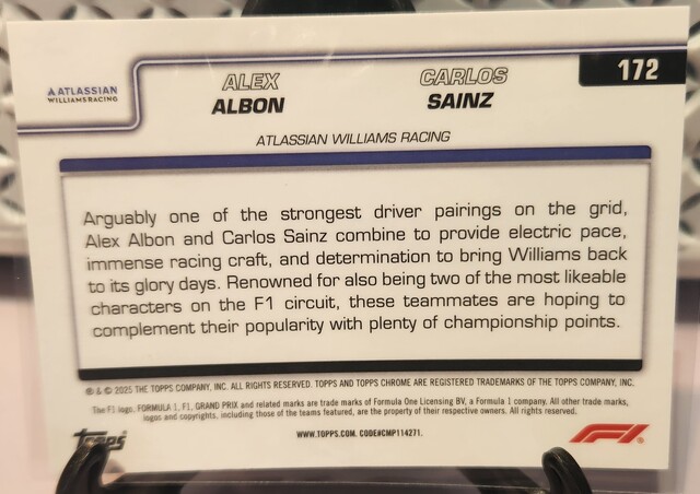 ![Alex Albon / Carlos Sainz [Checker Flag Refractor] #172 2025 Topps Chrome Formula 1](/images/572821/pid5894064/20260322_142301.jpg?tm=1774143473&kb=96)