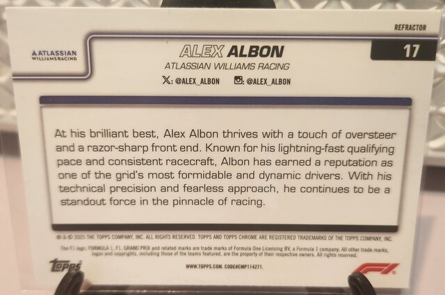 Alex Albon #17 2025 Topps Chrome Formula 1