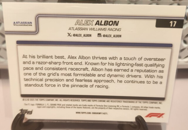 ![Alex Albon [Forest Green Raywave Refractor] 035/140 #17 2025 Topps Chrome Formula 1](/images/572821/pid5882676/20260301_161355.jpg?tm=1772336146&kb=110)