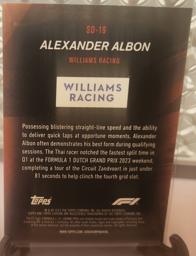 Alexander Albon #SD-19 2024 Topps Chrome Formula 1 Speed Demons