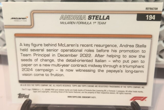 Andrea Stella #194 2025 Topps Chrome Formula 1