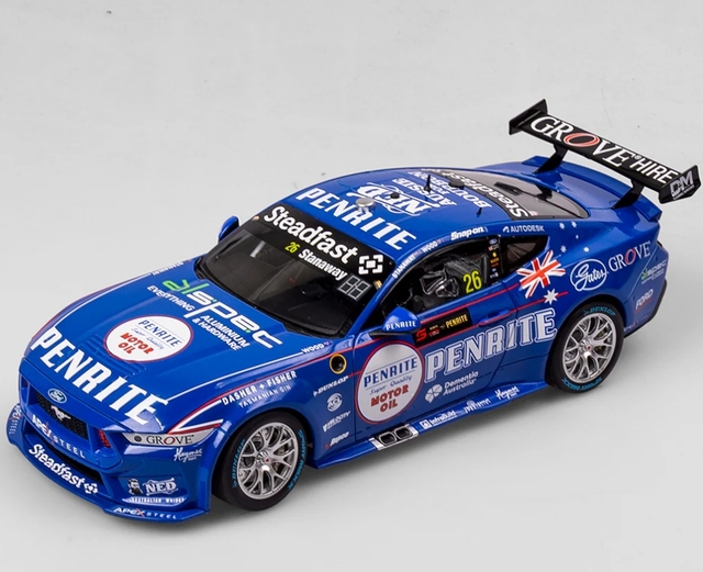 Product Description: 1:18 Scale Penrite Racing #26 Ford Mustang GT - 2024 Penrite Oil Sandown 500 Retro Livery - Drivers: Richie Stanaway / Dale Wood
