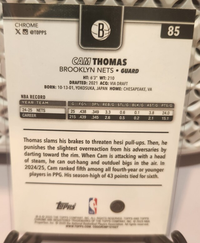 Cam Thomas #85 2025 Topps Chrome