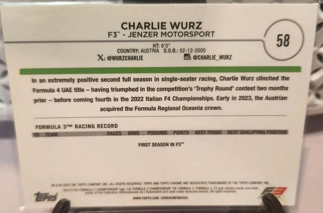 Charlie Wurz #58 2024 Topps Chrome Formula 1