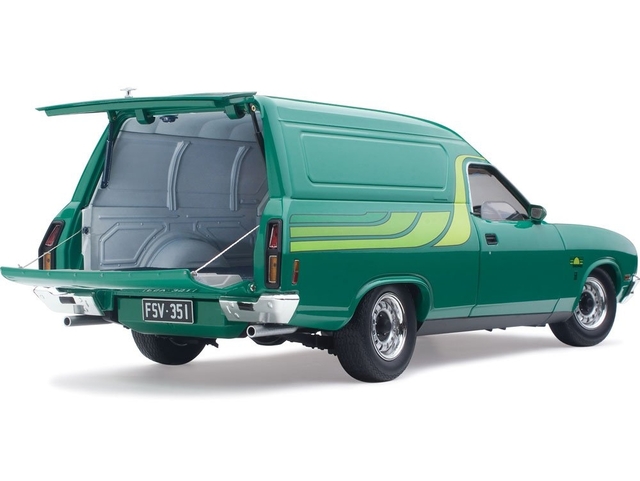 The Sundowner was available in 3 body styles the Escort, Transit and Falcon. The Falcon Sundowner was based on the Falcon 500 Van but included options reserved for GS Hardtop, with comprehensive dash instrumentation, 'NASA' bonnet scoops, slotted sport rims and driving lights. The side protection mouldings and rear side glass was removed from the Sundowner and replaced with distinctive loud side decals. The standard Sundowner 4.1 litre engine was able to be upgraded to either a 4.91 or a 5.81 with the GT Power Pack, the Power Pack also included 4 wheel disc brakes and limited slip differential.
