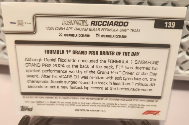 ![Daniel Ricciardo [Blue Refractor] 158/150 #139 2025 Topps Chrome Formula 1](/images/572821/pid5882673/20260301_161428.jpg?tm=1772335636&kb=93)