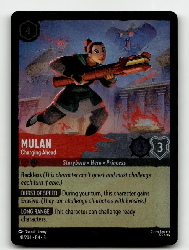 Disney Lorcana: Reign Of Jafar SUPER RARE FOIL Mulan - Charging Ahead #141/204