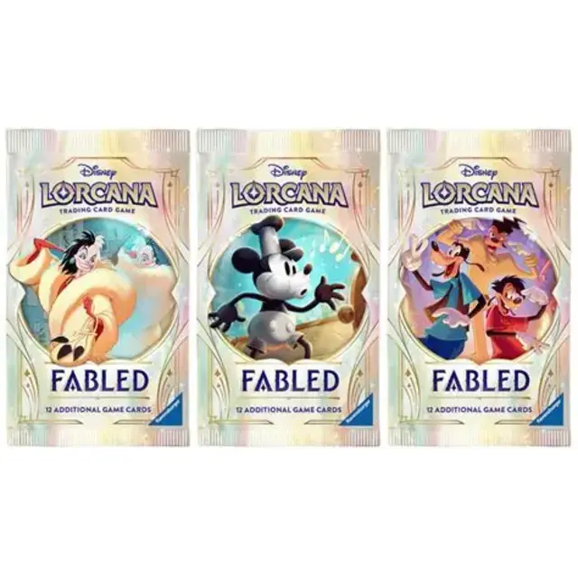 Bringing together Disney’s century of storytelling experience and Ravensburger's 140 years of games excellence, The Disney Lorcana Trading Card Game (TCG) is the world's most welcoming trading card game and the ultimate Disney collectible. The Disney Lorcana TCG set Fabled contains 200+ cards, including beloved animal glimmers from Disney's A Goofy Movie and more!