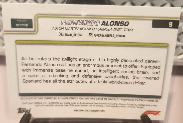 ![Fernando Alonso [Checker Flag Refractor] #9 2025 Topps Chrome Formula 1](/images/572821/pid5894071/20260322_150402.jpg?tm=1774145545&kb=119)