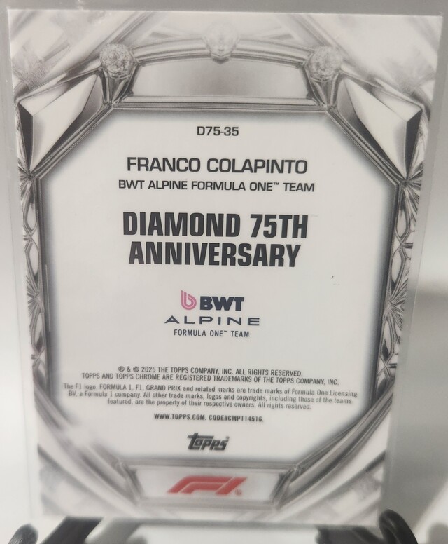 ![Franco Colapinto 166/199 [Purple Mini-Diamond Refractor] #D75-35 2025 Topps Chrome Formula 1 Diamond 75th Anniversary](/images/572821/pid5894038/20260321_151944.jpg)