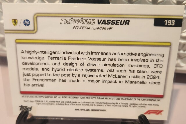 ![Frederic Vasseur 16/99 [Green Checker Flag Refractor] #193 2025 Topps Chrome Formula 1](/images/572821/pid5886851/20260315_155520.jpg?tm=1773544479&kb=114)