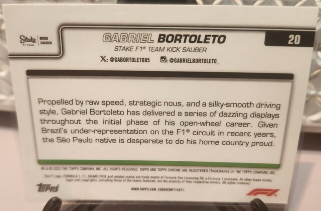 Gabriel Bortoleto #20 2025 Topps Chrome Formula 1
