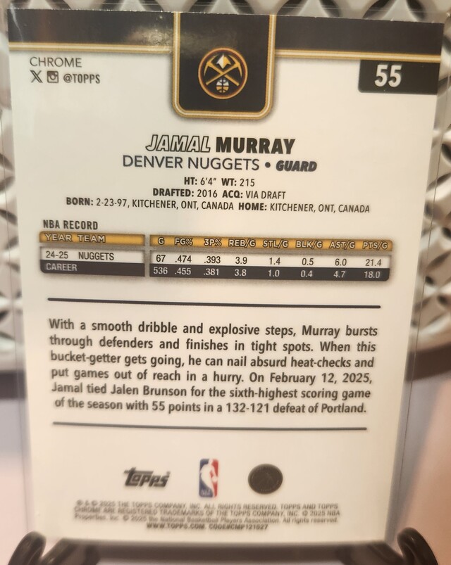 Jamal Murray #55 2025 Topps Chrome