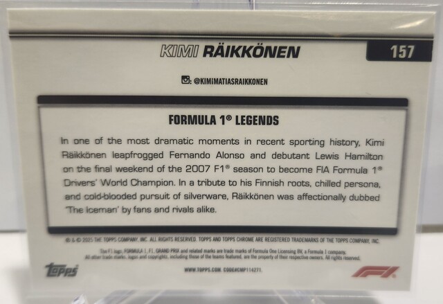 Kimi Raikkonen #157 2025 Topps Chrome Formula 1 Legends