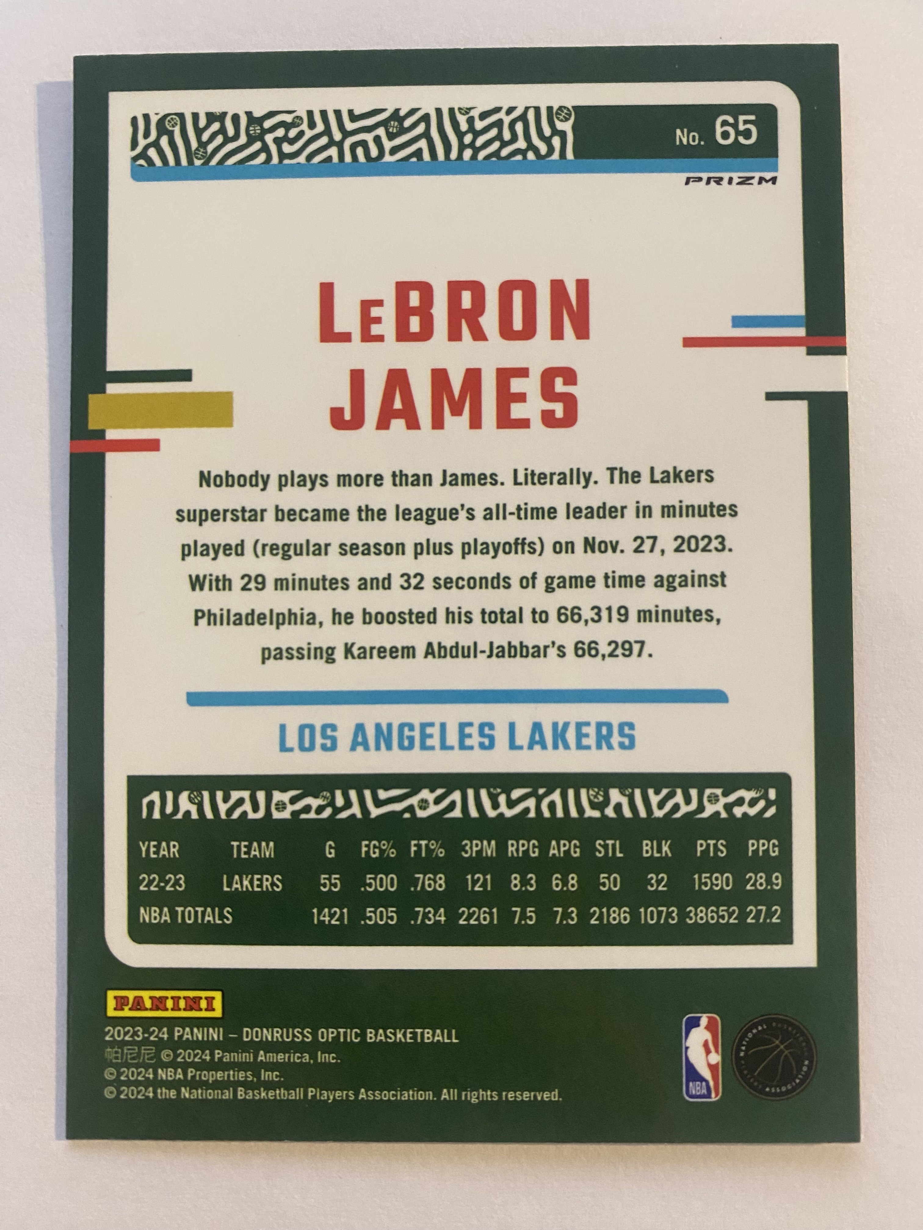 LeBron James #65 Pink Refractor 2023-24 Panini