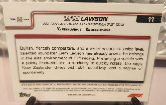 ![Liam Lawson 014/250 [Pink Refractor] #11 2025 Topps Chrome Formula 1](/images/572821/pid5886863/20260315_171025.jpg?tm=1773548547&kb=104)