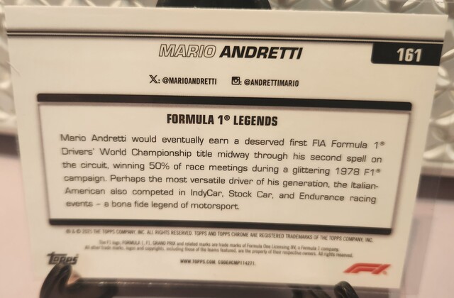 ![Mario Andretti 40/99 [Green Checker Flag Refractor] #161 2025 Topps Chrome Formula 1](/images/572821/pid5886854/20260315_162354.jpg?tm=1773545564&kb=113)