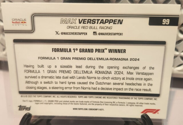 ![Max Verstappen 048/250 [Pink Refractor] #99 2025 Topps Chrome Formula 1](/images/572821/pid5886430/20260311_224648.jpg?tm=1773223043&kb=114)