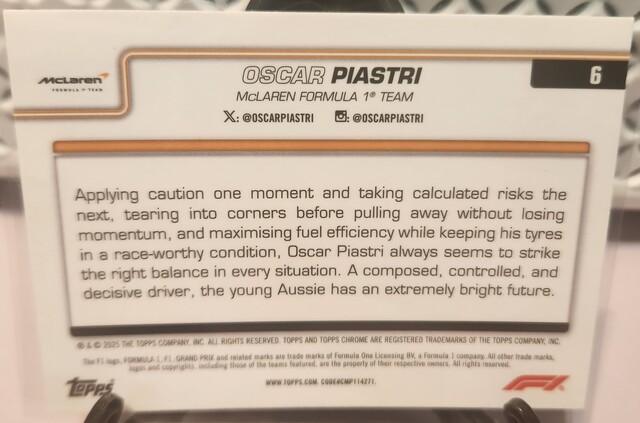![Oscar Piastri [Checker Flag Refractor] #6 2025 Topps Chrome Formula 1](/images/572821/pid5894073/20260322_150323.jpg?tm=1774145955&kb=121)