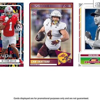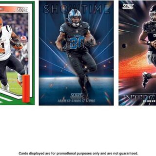 The 2025 Score set features a massive 400 cards — 300 base and 100 rookies — making the Mega Box the ultimate way to collect NFL stars, legends, and the hottest rookies of the year.