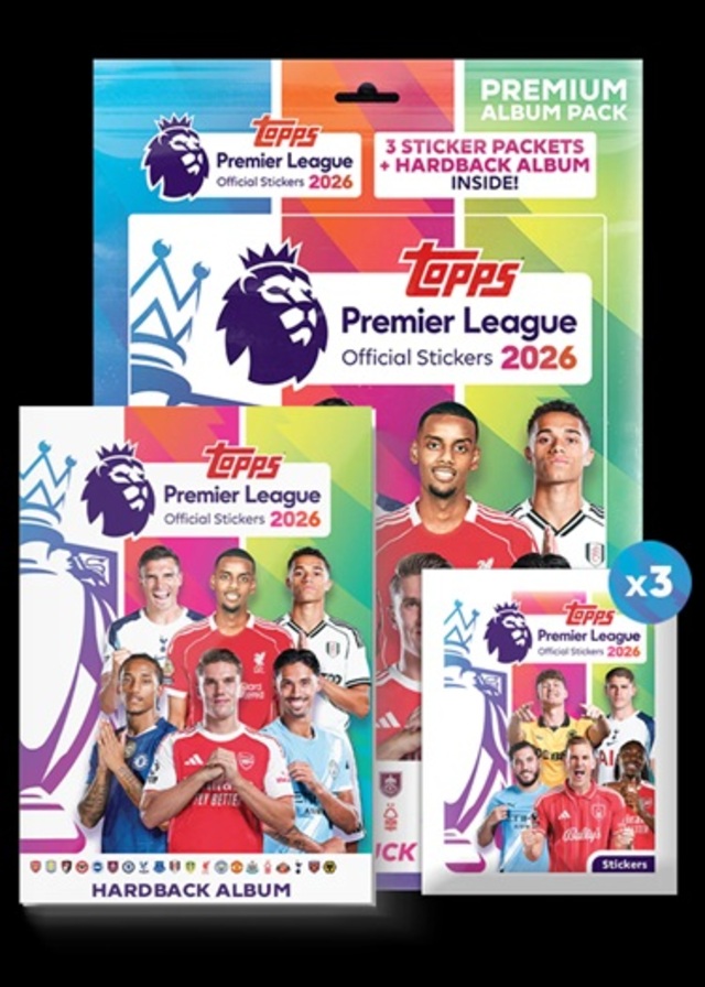 The Starter Pack with Hardback album contains a premium, hardback sticker album plus 3 sticker packets.