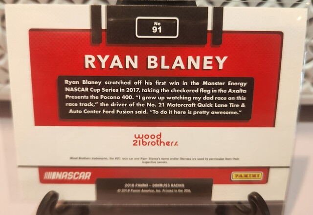 Ryan Blaney #91 2018 Panini Donruss Nascar