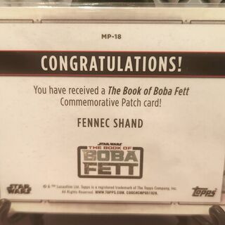 Star Wars Topps 2022 The Book of Boba Fett Fennec Shand Commemorative Patch Card - MP-18