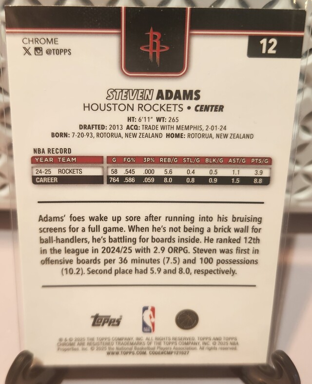 ![Steven Adams 297/399 [Magenta Refractor] #12 2025 Topps Chrome](/images/572821/pid5894683/20260324_164148.jpg?tm=1774324623&kb=100)