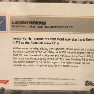 Topps Now 2021 Lando Norris Qualifies Front Row - Austrian GP