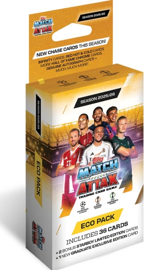 The Eco Pack contains 36 Match Attax cards plus 2 random Star Boy LE’s and a random The Graduates LE card.