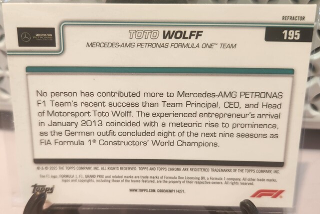 Toto Wolff #195 2025 Topps Chrome Formula 1