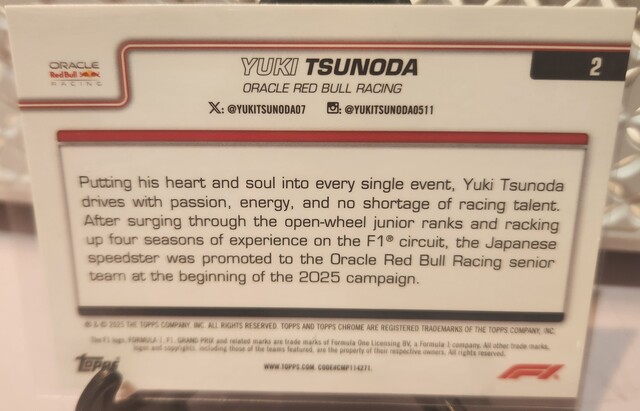 ![Yuki Tsunoda 114/250 [Pink Checker Flag Refractor] #2 2025 Topps Chrome Formula 1](/images/572821/pid5886032/20260309_234536.jpg?tm=1773053809&kb=112)