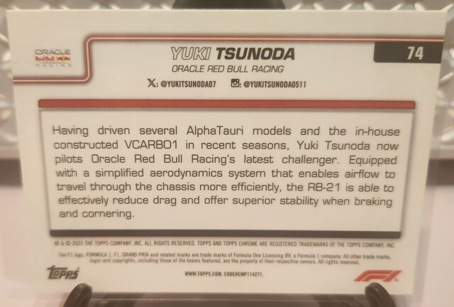 Yuki Tsunoda  #74 2025 Topps Chrome Formula 1